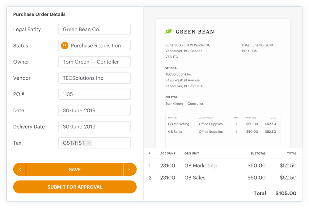 Improve control and insight over your planned spend and simplify your PO process.